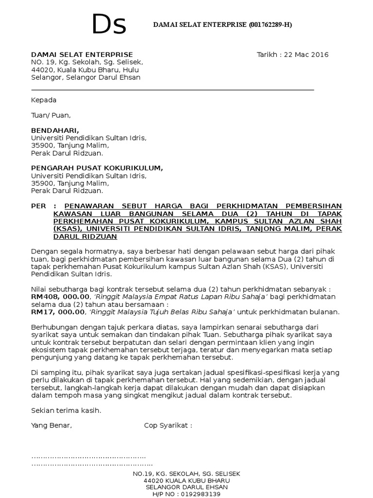 Contoh Surat Sebut Harga Perkhidmatan Letter 7saudara Com