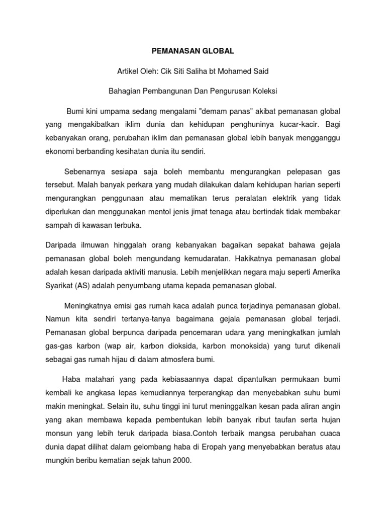Punca Dan Kesan Pemanasan Global Kepada Manusia Pdf